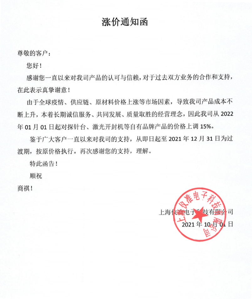 漲價通知函